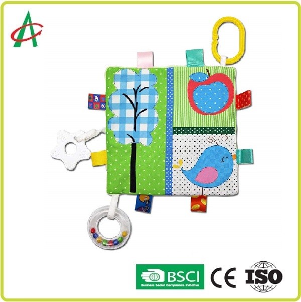 The teether is made by LDPE material, Reactive printed microfiber and textured underside with colorful satin tags, a rattle ring, a baby teether around combine to provide a optimal soothing touch. Your cute baby will feel at ease even when he or she plays with this soft security blanket.